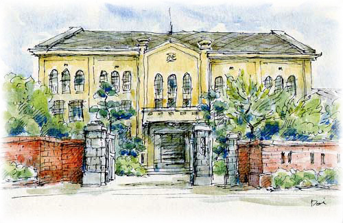 ニ. 東と西の文明の 流れ合わせて後のため尽さむ今に生れ出でし 幸を思いて奮いつつ天を敬して人を愛で 高き希望にあこがれて日々向上の道につく